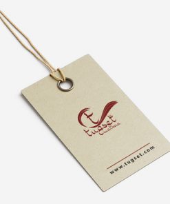 Kıyafet etiketlerinin üzerinde ürünün markası, mağaza adı, ürünün bedeni, ürünün yapıldığı malzeme gibi kıyafeti tanıtan birçok farklı bilgiyi barındırır. Bu tarz etiketlerde, istenilen tasarım kalın kağıda basılır ve ortaya çıkan karton etiketler müşterinin arzu ettiği taraftan delinir. Bu delikten geçirilen ip sayesinde karton etiket, bütün kıyafetlere kolayca takılabilir hale gelir.