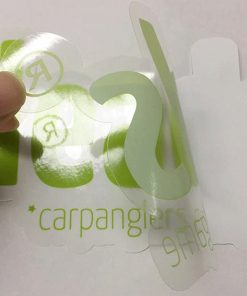 Şeffaf etiketlerde diğer etiket türlerinden farklı olarak baskı aşamasında arzu edilen tasarım şeffaf malzeme üzerine basılır. Şeffaf malzeme üzerine baskı yapıldığı için tasarımın arkasında beyaz bir katman bulunmaz. Bu sayede son derece estetik etiketler elde edilmiş olur. Şeffaf sticker sayesinde kullanıldığı yüzeyin tamamen gözükmesi sağlanır ve ambalajlardaki detaylar kapanmaz. Böylece yalnızca marka, logo, ürün adı, içerikler, resim, slogan gibi istenilen baskının göz önünde olmasını sağlayan ve dikkatin tamamen bu unsurlara çekilmesine yardımcı olan bir etiket türüdür.